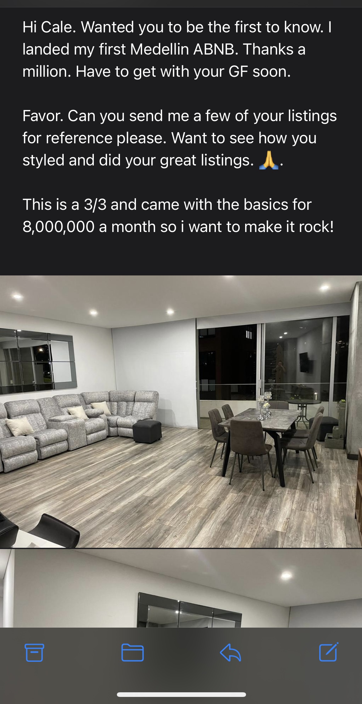 "Found my first property to do Airbnb with 2 weeks after being here"